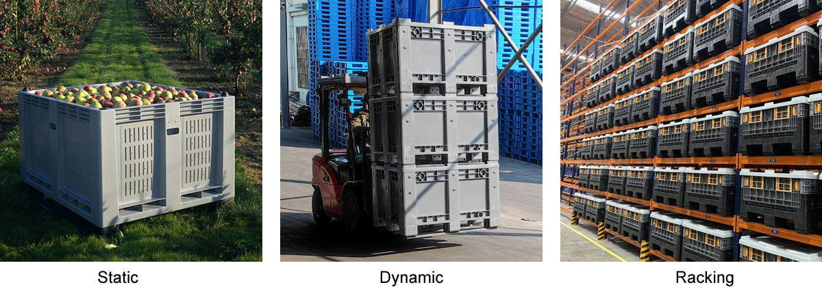 - Dynamic Load: The maximum weight the box can hold while being moved by equipment like a forklift or pallet jack.