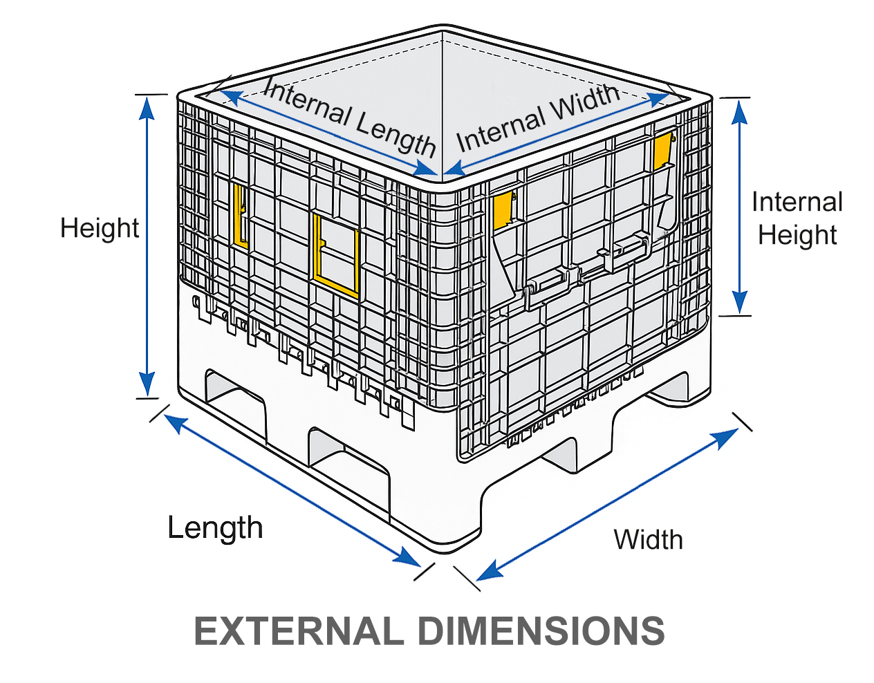 - External Dimensions (L x W x H): These determine how the box fits in your warehouse racking, on transport vehicles, and through doorways. Plan your storage density and transit loads based on this.